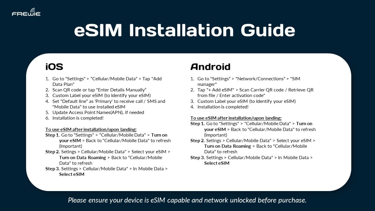 • Please ensure that you have an eSIM compatible and network-unlocked device, and the travel itinerary is confirmed.