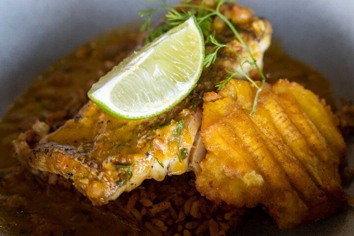 - Encocado de Pargo Rojo – red snapper in coconut sauce, with coconut rice and patacones