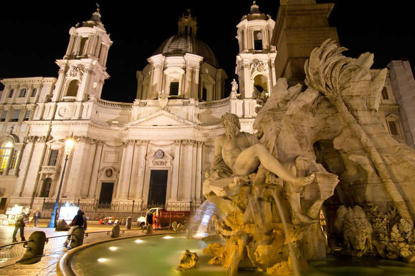 In Piazza Navona we circle the work of the Baroque master Bernini with the River of the Four Fountains.