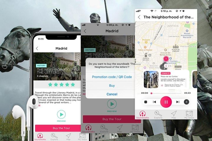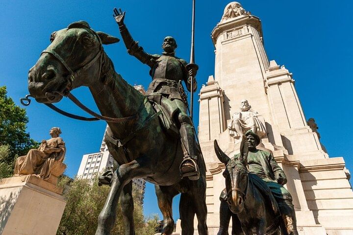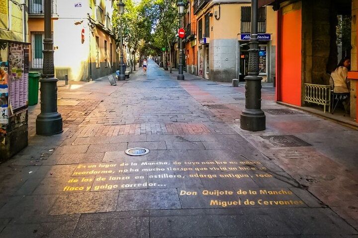 On this literary tour, experience firsthand the stories of the legendary Spanish authors who brought to life what is now known as the Quarter of Letters of Madrid. From Cervantes, the author of Don Quixote, to Lope de Vega, you'll pass by the places where they lived and the stories they left behind, as well as their literary legacy. Your narrator will begin in the Plaza de las Cortes and bring to life the Madrid of the past through the lives of these great artists. On Cervantes Street, he will help you identify the house where Lope de Vega and Cervantes lived. You will continue to Góngora y Quevedo and learn about the famous scandalous anecdote that happened one morning in 1601 in a house that attracted the attention of the whole neighborhood. You will also pass by the Monastery of the Trinitaria on Calle Lope de Vega, where artists gathered in the house of Francisco de Quevedo. Your tour ends on Calle Huertas.