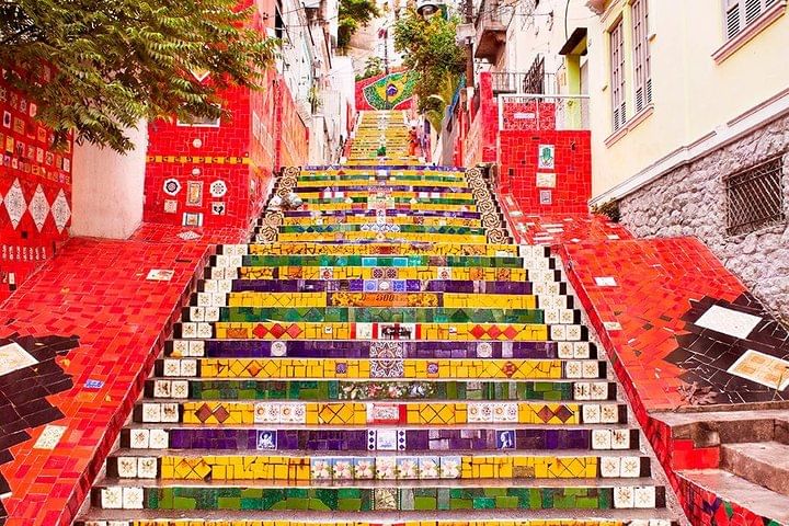 Discover in a unique way perhaps one of the most colorful and famous staircases in the world. Unlike many others who stop only to take a photo, you'll get insights from Romario, a young Carioca boy who decides to tell you the story of the Santa Teresa neighborhood and the artist Jorge Selaron who designed the unique staircase. As you climb the stairs, your narrator will help you discover some of the unique tiles that deserve a closer look. You will also discover the historical background of the Morro do Desterro , the Monastery of St. Teresa built in 1750 and the history of the old tramway. Your tour will also take you past the Museum of the Ruins. Even if you do not enter it, you will be able to learn some of its stories and see the painting by Joao Barbosa on the wall. Your walk ends in front of the Museum of Chacara do Ceu, where you can admire the beautiful sculptures that decorate the facade.