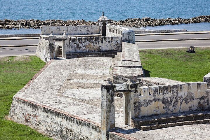 This tour can be done independently of the self-guided tour to Cartagena Fortress: The Rise of the Wall Part I. The voice of Antonio Arévalo, one of the builders of the fortress, is your narrator on this special audio walk. He embarks on a journey back in time to show you the walls of Cartagena, with special commentary on the engineering marvels that were designed to protect the city from pirate attacks. Your tour begins just outside the Bovedas, where you'll learn how they were used as Republican prisons in colonial times and now serve as an exhibition space and selling point for handicrafts from all over Colombia. You will walk on the wall and discover the Santa Clara bastion and see the house of Gabriel Garcia Marquez. Your narrator will ask you questions along the way and make everything you learn about the architectural elements entertaining and exciting. You will hear the poem by Daniel Lemaitre that inspired the monument that you can see from this place.